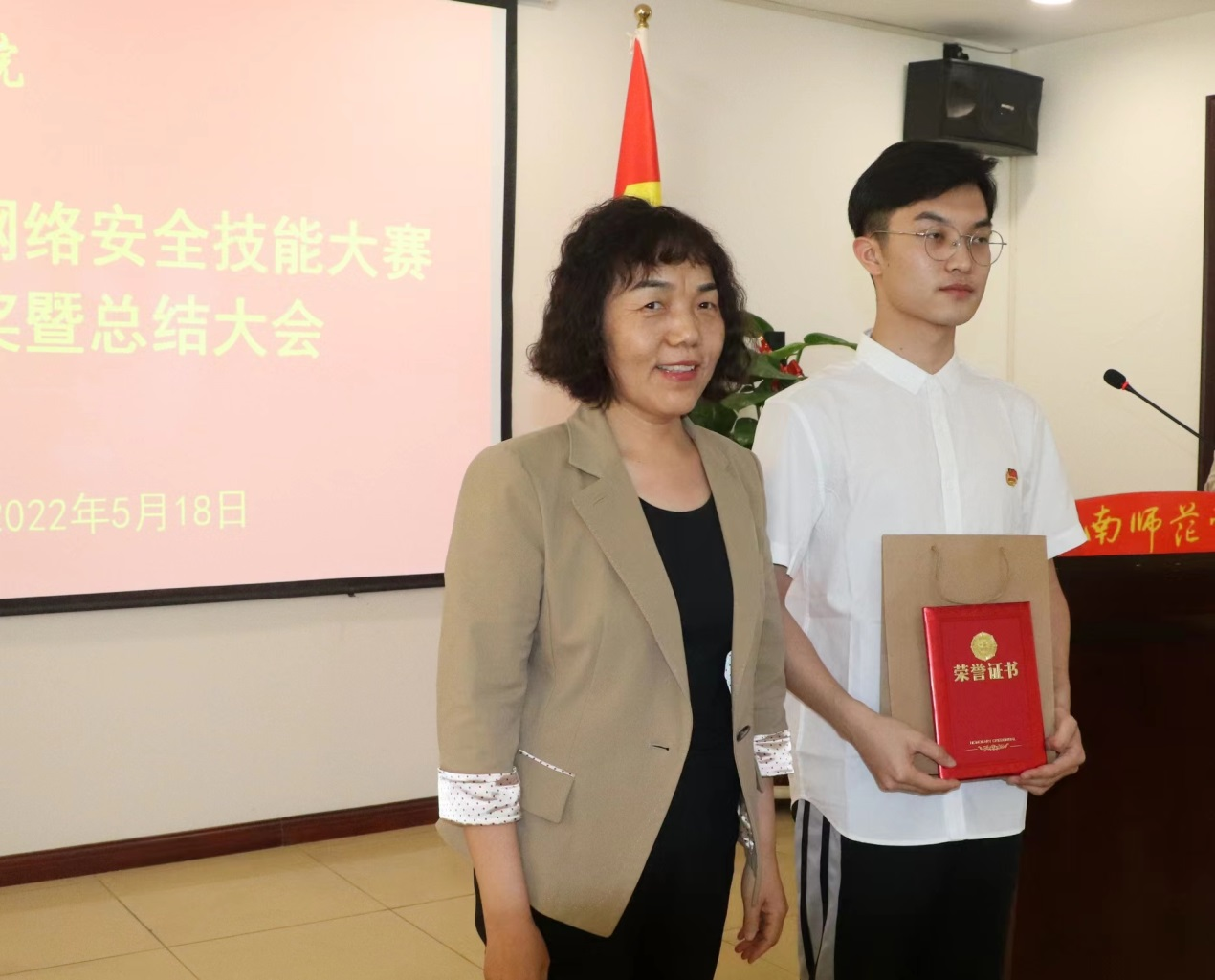 5月18日下午,由学校团委主办、计算机学院承办的欧宝娱乐官方app第三届网络安全技能大赛颁奖暨总结大会在厚德楼第二会议室举行。学校党委书记卓宇、党委副书记汪勇、副校长王菊霞出席大会,团委副书记肖飞、计算机学院党政负责人、各专业建设负责人、获奖学生等参加大会。大会由计算机学院党总支副书记武楠主持。