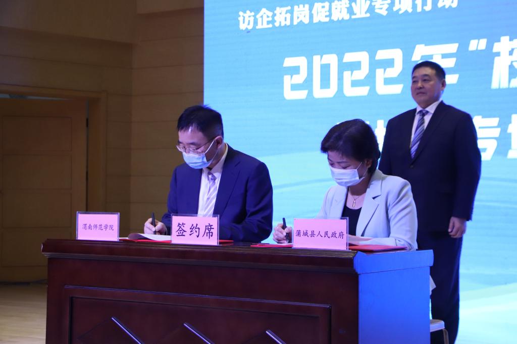 5月18日上午,学校与蒲城县委县政府在云帆体育馆联合举办2022年“校企合作 招才引智”蒲城县专场招聘会启动仪式。
