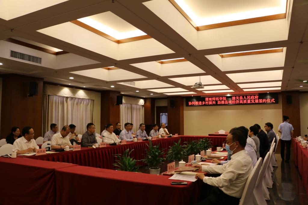5月19日,党委书记卓宇,党委副书记韩小卫,党委委员、宣传部部长李明敏一行到潼关县调研座谈并签订校地合作协议。