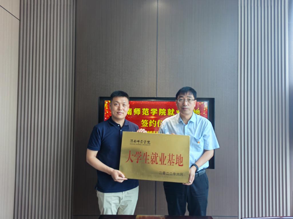 美术学院院长殷晓克与张涛签订了共建大学生就业基地协议书。