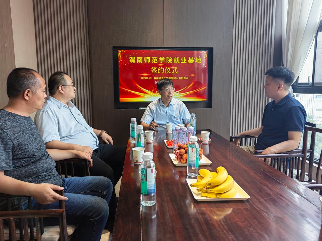 6月8日上午,党委副书记韩小卫带队走访渭南峰光无限装饰建材有限公司,就进一步拓宽毕业生就业渠道,深化校企合作进行交流。美术学院党政负责人陪同。