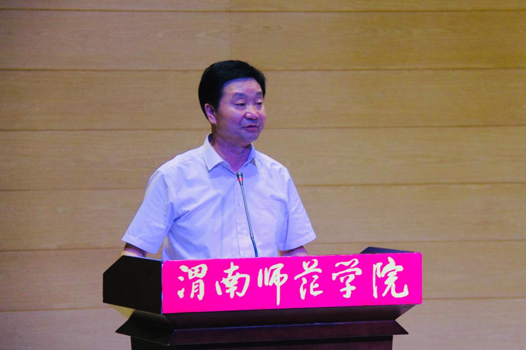 王菊霞代表学校对榆林高新中学全体学员表示欢迎,对学校的基本情况、办学特色以及近年来中小学教师培训情况做了简要介绍,对学校与榆林高新区教育文体局下一步的合作内容作了说明。针对本次培训,她希望,学员们珍惜机会,学有所思,学有所获,在渭南度过一段充实而愉快的时光。