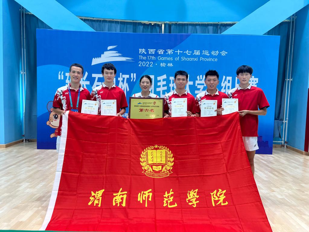 7月31日至8月3日,我校羽毛球代表队参加陕西省第十七届运动会羽毛球大学生组比赛,荣获乙组男团第六名和体育道德风尚奖。