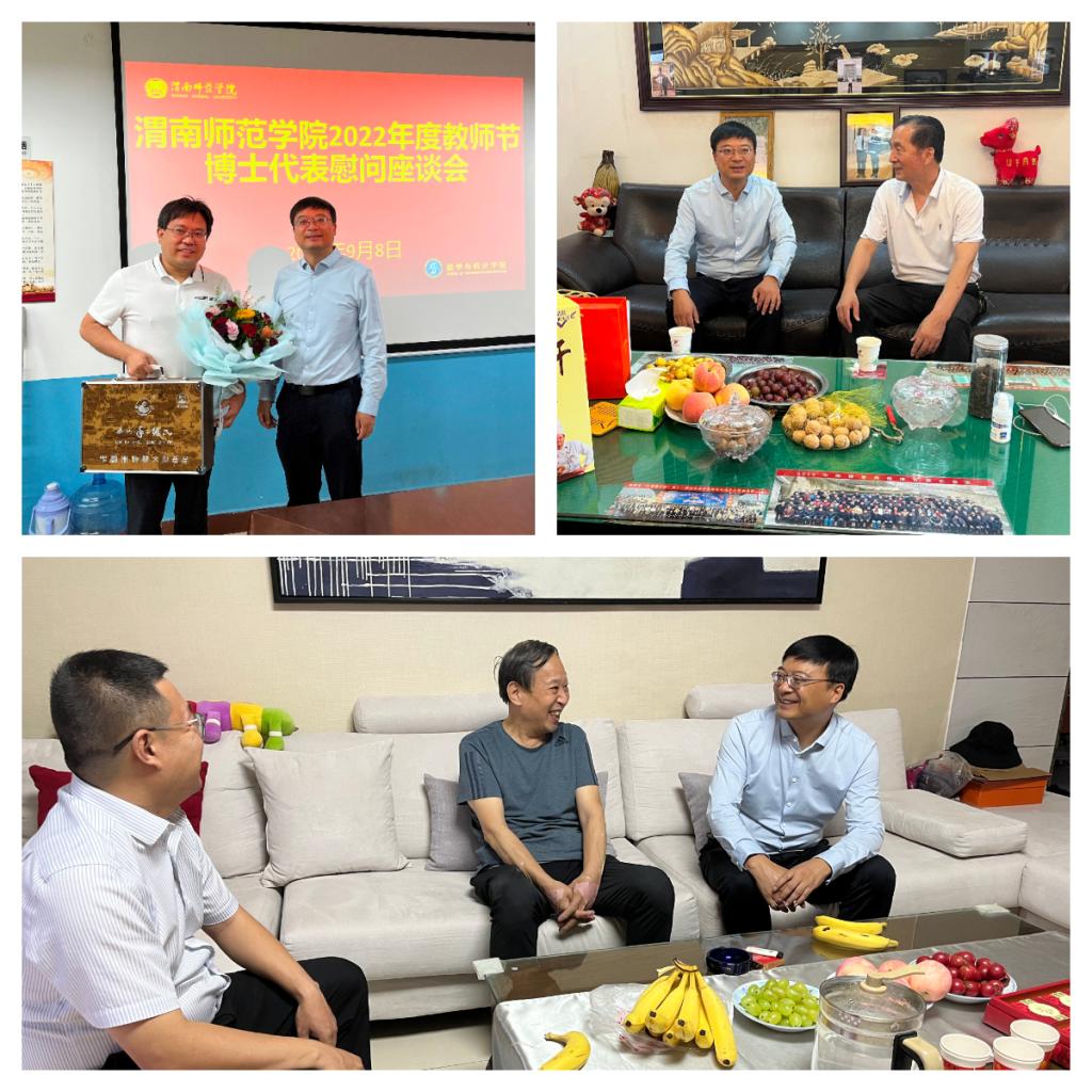 党委副书记、纪委书记肖耀刚走访慰问了退休教师任健、经济与管理学院教师李永生、马素英;党委副书记韩小卫走访慰问了退休教师季玉民,视频连线慰问了传媒学院教师战美霖;党委副书记汪勇走访慰问了退休教师孟振庭、附属医院教职工孟菊萍、物理与电气工程学院教师王凯;党委副书记袁亮走访慰问了外国语学院教师雷来富、教育科学学院教师刘峰、马克思主义学院教师屈琦;党委委员、副校长卢爱刚走访慰问了化学与材料学院教师付新、杨珊、环境与生命科学学院教师蒋缠文;党委委员、副校长王菊霞走访慰问了退休教师王炳社、莫斯科艺术学院教师郭秦岭、物理与电气工程学院教师何冰;党委委员、副校长常青林走访慰问了退休教师张虎、姚和平、数学与统计学院教师刘炳全;党委委员、副校长曹强走访慰问了人文学院教师陈西洁、外国语学院教师李碧云、音乐学院教师杨冬菊;党委委员凌朝栋走访慰问了计算机学院教师陈莉萍、葛莉、教育科学学院教师严苏凤;党委委员李明敏走访慰问了数学与统计学院教师杨秀香、环境与生命科学学院教师高志勇、人文学院教师刘树友。