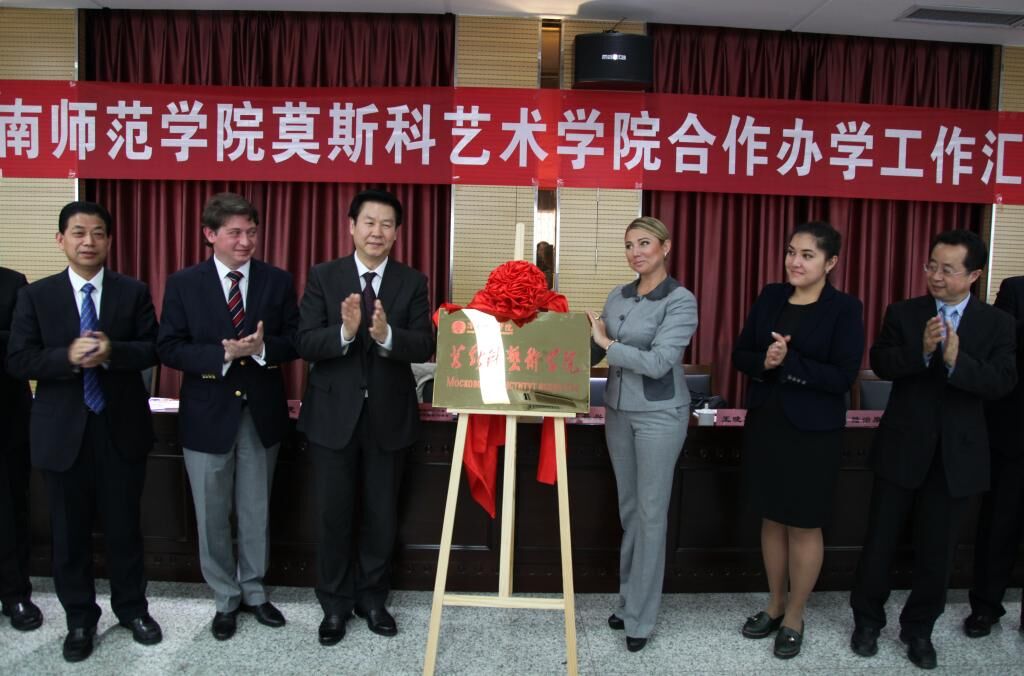 时任陕西省副省长庄长兴为我校莫斯科艺术学院揭牌