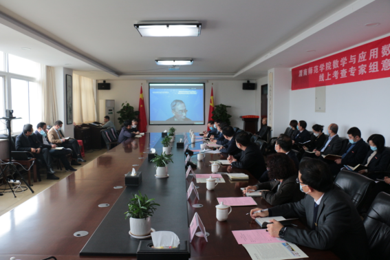 线上考查期间,专家组依据教育部师范类专业认证实施办法,以“五个度”为主线,在审阅自评报告、数据分析报告、专家案头材料的基础上,撰写审读意见,拟定考查计划,规范有序开展考查工作:召开各类工作会议16次,听课看课16节次;调阅毕业论文和毕业设计50份,教育实习报告50份,课程期末考试试卷10门次共200份;查阅校、院两级管理文件、教学档案以及相关支撑材料140多份;访谈在校生10人次,毕业生6人次,教师代表10人次;访谈专业负责人、学院领导和管理人员16人次;访谈用人单位和校友代表,两次座谈会21人次;考查学校图书馆、师范生职业技能训练中心,数学与统计学院办学条件和师范专业教学成果展、智慧教学中心、专业实验室、专业实习基地等教学单位和教学设施。