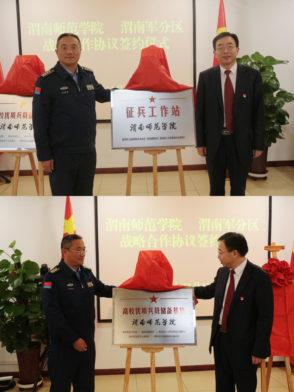 张守华、吴森林共同签署了《欧宝娱乐官方app渭南军分区战略合作协议》,并为学校“征兵工作站”“高校优质兵员储备基地”进行揭牌。