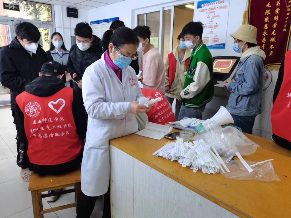 为全力保障师生安全,避免人员流动带来的病毒感染风险,学校静态管理期间,附属医院要求校外核酸检测机构采样人员全员驻校工作。经多方协商,渭南市中医医院核酸采样团队于11月26日入驻附属医院。附属医院住校职工主动克服“连轴转”“严要求”等困难,每日凌晨备物资、送物资,为学生提供核酸采集服务。