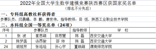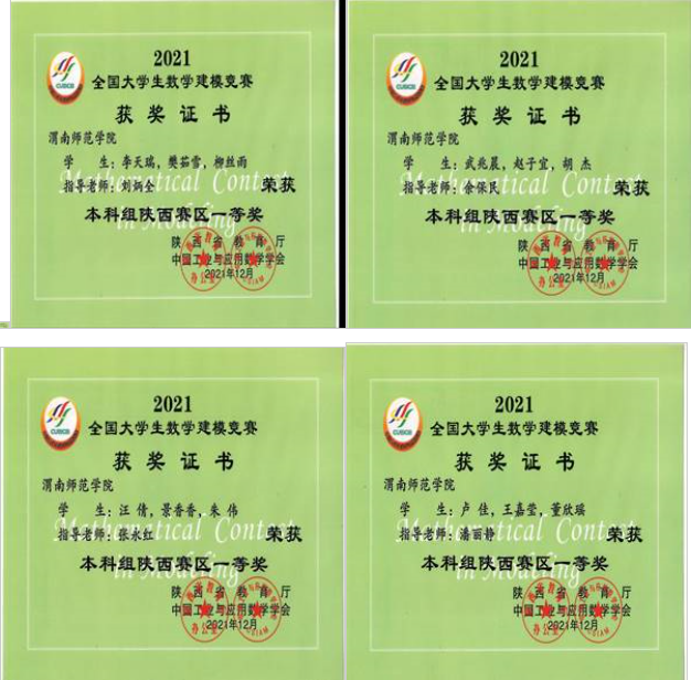 近日,全国大学生数学建模竞赛组委会公布了2022年数学建模竞赛获奖名单,在学校领导的精心指导和大力支持下,经过教务处和数学与统计学院认真组织和培训,数学与统计学院胡旭芳、张培培、孙心宇三位同学组成的参赛队(指导老师董晓萌)喜获全国一等奖,欧宝娱乐官方app也再次被评为优秀组织工作奖,这是欧宝娱乐官方app从2004年参加该项赛事以来第二次连续获得全国一等奖,此外欧宝娱乐官方app学子还获得陕西省一等奖8项、二等奖12项的优异成绩。