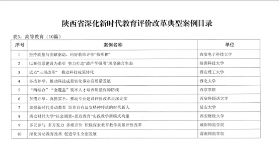 日前,中共陕西省委教育工作领导小组秘书组公布了《关于印发陕西省深化新时代教育评价改革典型案例的通知》,我校“深化劳动教育改革,促进学生全面发展”案例成功入选。此次评选活动由省委教育工作领导小组秘书组组织,经单位自主申报、各市(区、县)及高校推荐、专家评审,全省共有10个案例入选高等教育典型案例。
