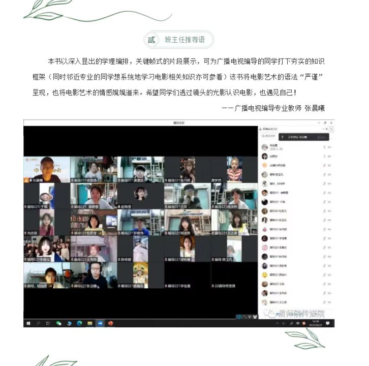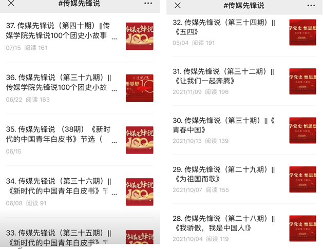 “传媒先锋说”栏目创设于2021年初,是学院发挥特色专业优势,利用新媒体平台,用好网络育人手段,用碎片化、互动化、交互性的方式引导青年学生学习,用新型传播手段创新网络思想政治教育。“传媒先锋说”栏目引导青年学生系统学习党史、团史,学习身边的先进典型和榜样人物,将理想信念内化于心、外化于行,指引青年学生为实现中华民族伟大复兴的中国梦而努力奋斗。学院邀请学校抗美援朝老兵、退休老教师、老党员——付自善讲述革命故事,现场展示老英雄荣获的军功证书和革命纪念章,激励广大师生在奋发有为中践行初心使命;学院组织教职工和学生党员参观学习学校“两联一包”扶贫点大荔县龙门村,与8年坚守脱贫攻坚一线、第一驻村书记、陕西省“优秀共产党员”获得者——赵琦座谈交流,致敬身边的典型榜样;栏目的“抗‘疫’作品展”更是极大地鼓舞了师生的士气,教师线上授课异彩纷呈,师生的战“疫”日记、抗“疫”作品展更是百花齐放,思想教育与专业建设并行,爱国主义教育情感渗透在作品的字里行间。截止目前,“传媒先锋说”栏目已推送宣传内容44期。