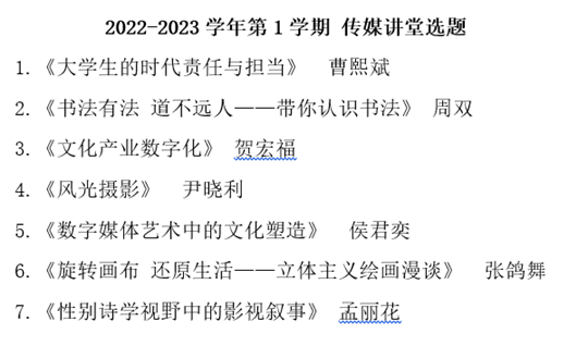 “名师讲堂”栏目创设于2018年,旨在通过学术讲座和报告,提升学生的文化专业素养以及综合能力。“名师讲堂”既有校内名师开讲,也有校外专家学者的精彩报告,为师生的文化素养、研学创作指引了方向和最新的学术动态。截止目前,先后举办了《舞台设计艺术与戏剧空间的联系和交融》《红色记忆与秦腔艺术虚拟现实展示》《秦东文化遗产三维数字化实践》《专业与未来的思考》《大学生的时代责任与担当》等各类讲座、报告30余场次,为增强学生文化自信、厚植家国情怀和专业能力提升起到了积极的作用。