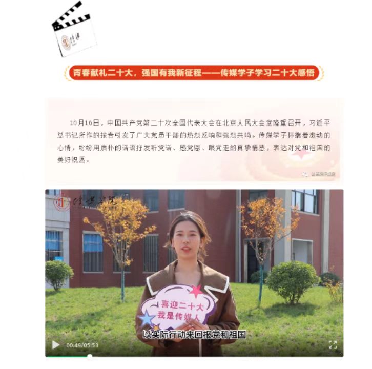 党的二十大报告指出:“青年强,则国家强。广大青年要坚定不移听党话、跟党走,怀抱梦想又脚踏实地,敢想敢为又善作善成,立志做有理想、敢担当、能吃苦、肯奋斗的新时代好青年。” 以党的二十大精神引领校园文化建设,积极营造以文化人、以文育人的良好氛围。近几年,欧宝娱乐官方app重视加强“一院一品”校园文化特色品牌建设,目前,全校16个二级学院均已打造出了紧密结合学科专业特色的“一院一品”校园文化品牌,形成了“各具特色、百花齐放、优势突显”的校园文化品牌建设良好局面。尤其是学校传媒学院打造的“光影传媒”校园文化特色品牌,以活动内容丰富、形式新颖、师生参与面广、教育意义大、社会反响良好,在全校“一院一品”校园文化特色品牌中树立了一流口碑。“光影传媒”获批2022年学校思想文化特色品牌重点建设项目。