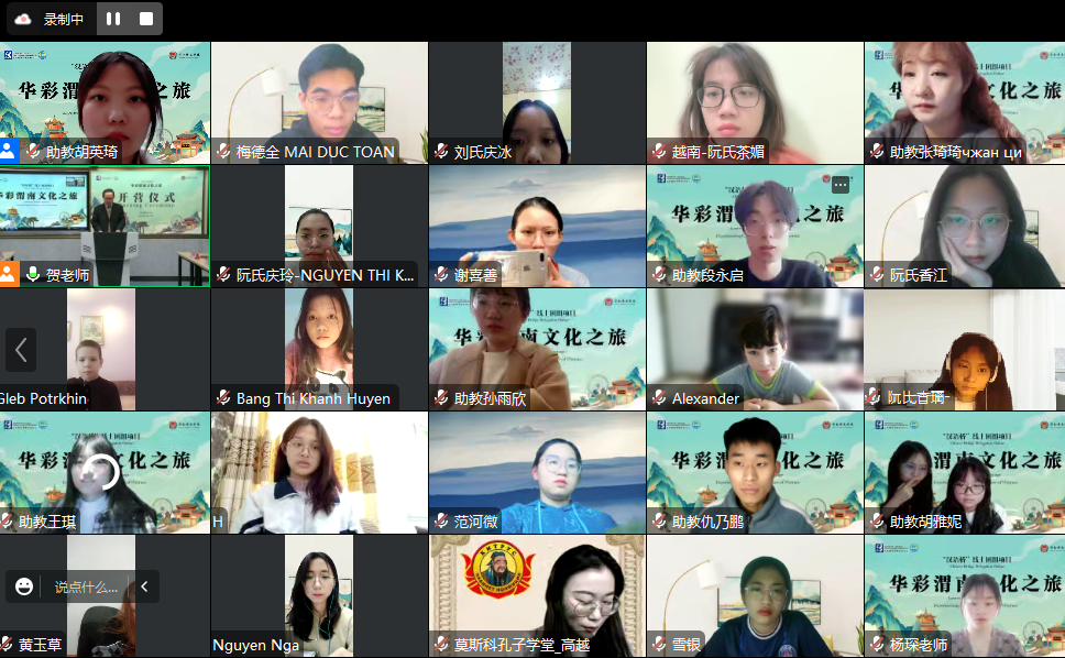 人文学院院长赵前明,项目主讲教师代表宋引秀、陈西洁、王淑莉、卜晓梅、弥萍、于占豪、王文娇,学生志愿者和来自俄罗斯、白俄罗斯、匈牙利、泰国、韩国、柬埔寨、越南等国家的的300余名营员以线上线下联动的方式参加仪式。(记者 贺星蓓 审核人 杜百顺)