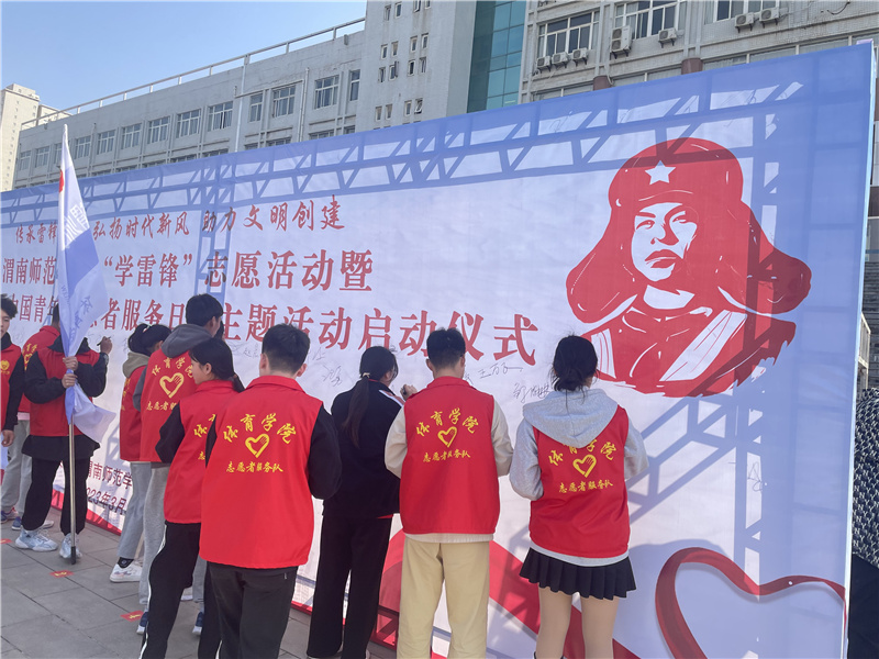 最后,参加仪式的学生纷纷在横幅上签下名字,表示要坚定不移地弘扬雷锋精神,为渭南市创建全国文明城市和省级文明校园创建作出自己的贡献。
