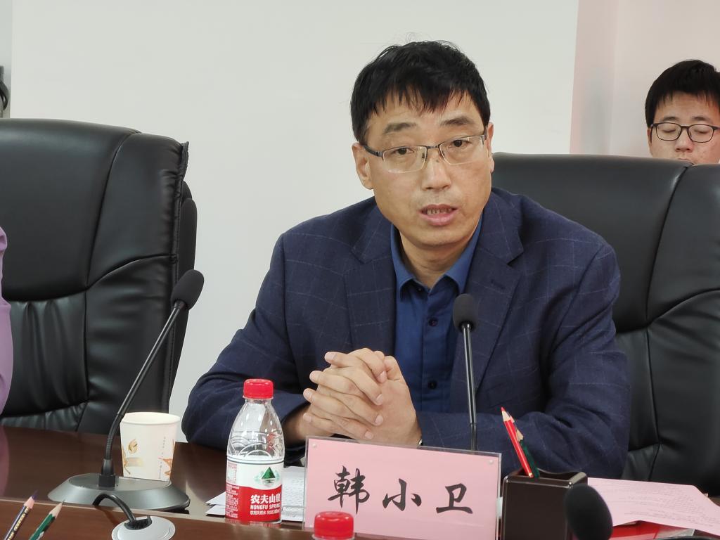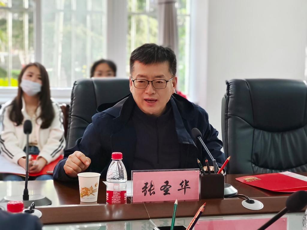 韩小卫致欢迎辞。他对张圣华的到来表示欢迎,简要介绍了我校办学历史、师资力量、教学科研及“全民阅读,书香校园”活动开展情况。