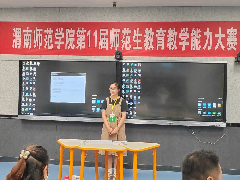 本届大赛历时一个月,分为二级学院初赛和学校决赛两个阶段,师范类专业大二、大三、大四学生参加。大赛分为文科组、理科组、艺体组三个组别,设置粉笔字书写、即兴演讲、教学设计、课件制作、说课、模拟授课、回答提问等多个环节。校级决赛由教务处主办,教育科学学院承办,三个组别共有69名同学进入决赛。决赛评委全部来自基础教育一线,在展示环节结束后,评委从教学内容设计、教学重难点把握等多方面进行了点评指导。