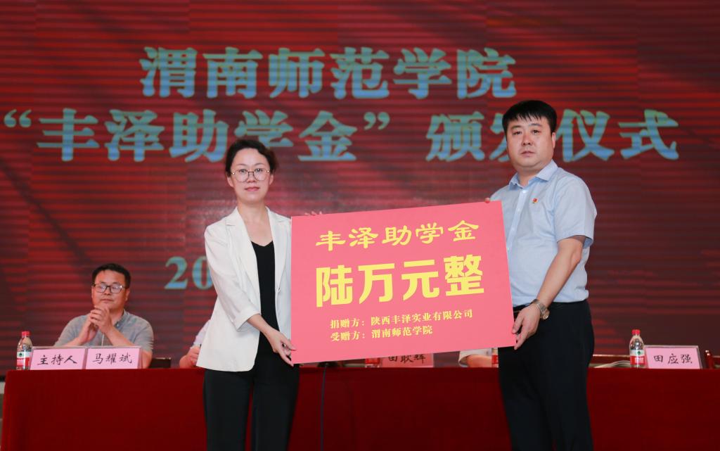 据悉,丰泽公司在自身发展的同时,始终以“发展企业 造福员工 创造价值 回报社会”为使命,积极履行社会责任,通过深入开展扶贫帮困、公益捐赠、关爱孤残、抗疫救灾等活动,先后向贫困群体,相关政府、社会机构捐款捐物,以实际行动彰显企业的责任担当。经校企双方沟通、协商,陕西丰泽实业有限公司于今年在我校设立以企业名称为命名的丰泽助学金,资助金额24万元,用于资助我校2022级陕西宝鸡籍家庭经济困难、品学兼优的20名学生完成大学学业愿望,激励和引导学生以积极昂扬的精神风貌热爱生活,追求理想。每人资助12000元,分8个学期发放,此次颁发的是2022-2023学年度两个学期的助学金。(通讯员 张小苗 审核人 田耿辉)