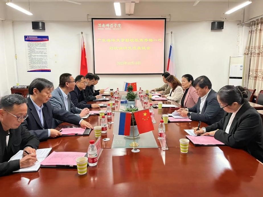 10月18日上午,广东海洋大学副校长高秀梅、国际交流与合作处处长陈进军等一行5人来莫斯科艺术学院调研交流。我校党委委员、副校长曹强,国交处相关负责人及莫斯科艺术学院全体处科级干部陪同调研交流。