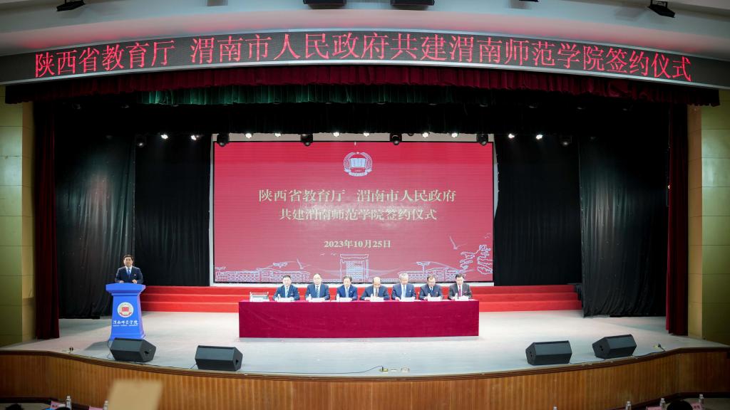 10月25日上午,陕西省教育厅与渭南市人民政府共建欧宝娱乐官方app签约仪式举行。市委书记樊维斌,省委教育工委书记刘建林出席并讲话。省教育厅厅长王树声、市长陈晓勇现场签订协议书。渭南市委常委、市委组织部部长,市政府副市长、党组副书记、渭南高新技术产业开发区党工委书记高振鑫,欧宝娱乐官方app党委书记卓宇、校长张守华参加活动。副市长刘宝琳主持签约仪式。