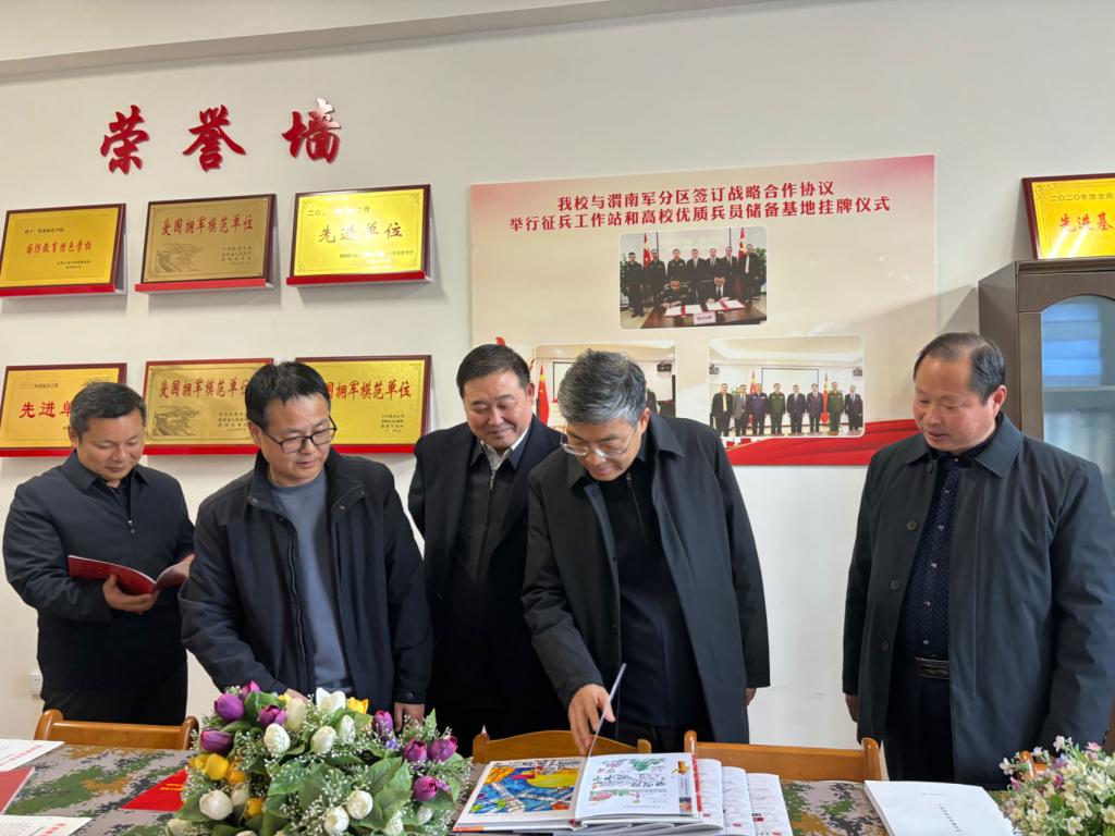 陕西省退役军人事务厅拥军优抚处副处长平锐军、四级调研员张宏康、陕西省军区政治工作局干事贾百平,渭南市双拥工作领导小组办公室副主任、市退役军人事务局副局长叶玉林,渭南军分区政治工作处副处级干事徐志章,学校学生工作部(人民武装部)相关人员陪同调研。(通讯员 周伯晓 审核人 田耿辉)