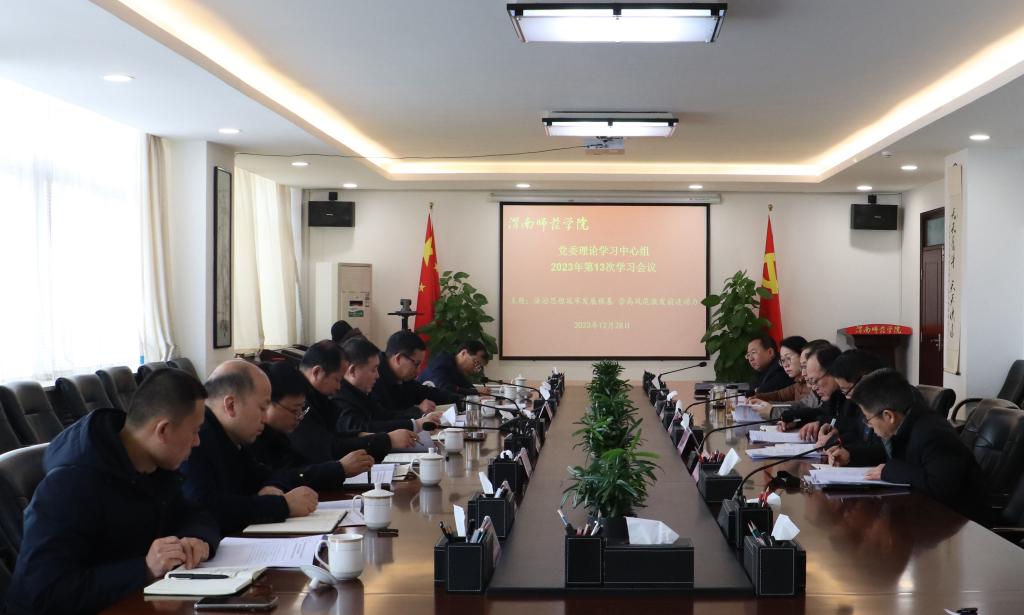 12月28日上午,我校召开党委理论学习中心组2023年第13次学习会议,围绕“法治思想筑牢发展根基 崇高风范激发前进动力”为主题进行学习。党委书记卓宇主持学习会。
