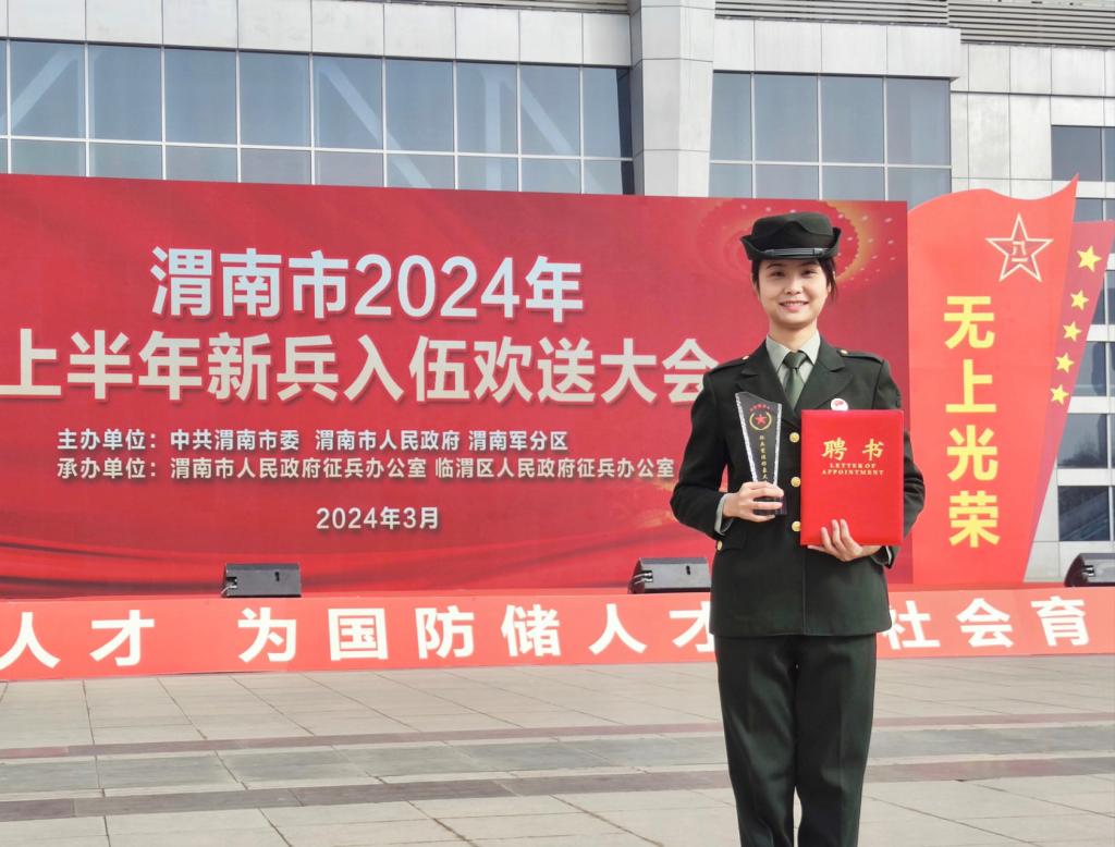 近日,渭南市2024上半年新兵入伍欢送大会上我校退伍大学生郑子馨、李昱霖被聘为渭南市“征兵形象宣传大使”。