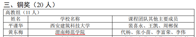 3月27日,陕西省教育厅公布了首届全国大学生职业规划大赛陕西赛区大学生职业发展与就业指导课程教学赛道获奖名单。经专家评审,高教组最终评出金奖4人、银奖7人,铜奖11人。我校经济与管理学院教师黄东梅及其课程团队成员获高教组铜奖。