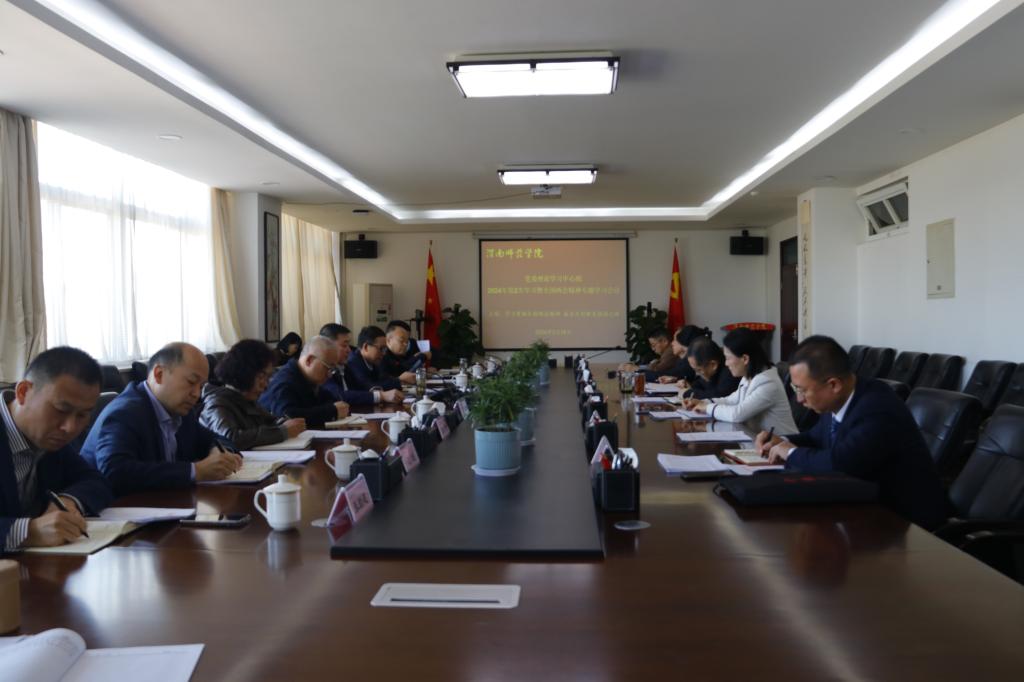 就深入学习贯彻全国两会精神,切实把两会精神落到实处,会议强调,一是要久久为功,答好终身学习的永恒课题。坚持需求导向、目标导向和实用导向,当好关键引领、尽到关键责任、发挥关键作用,从思想上正本清源、固本培元,筑牢信仰之基、补足精神之钙、把稳思想之舵。二是要实干担当,把规划蓝图变为现实画卷。紧密结合学习贯彻习近平总书记历次来陕考察重要讲话重要指示精神,以一以贯之的坚定和执着、一抓到底的作风和劲头,把目标任务和规划蓝图持之以恒细化为施工图、高质量转化为实景画,进一步推动学校各项事业高质量发展。三是要循道而行,写好教育强国的时代答卷。要准确把握教育、科技、人才三者的关系,不断提高学校改革发展与教育高质量发展的匹配度、精准度和贡献度,在培育壮大新质生产力中抢抓机遇,为教育强国、科技强国、人才强国建设贡献渭师的智慧和力量。