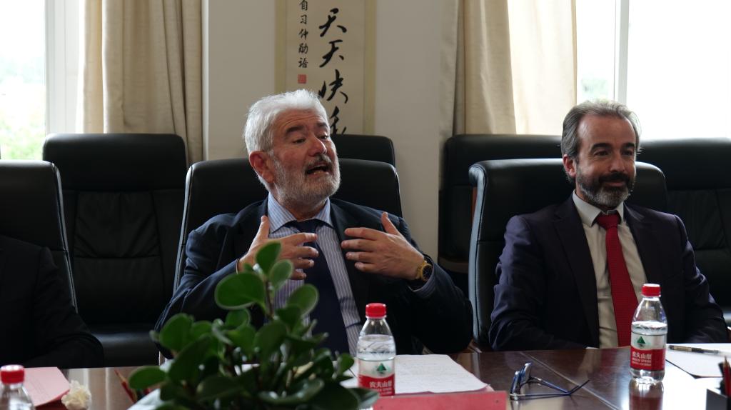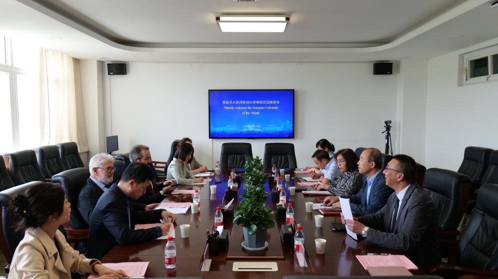 4月18日下午,西班牙大西洋欧洲大学校长Ruiz Salces Roberto Dudor(罗贝托·鲁伊兹) 、国际关系部部长Vidal Mazon Juan Luis(胡安·路易斯·维达尔)及中国办事处有关同志一行6人来校访问交流,与我校正式建立教育合作关系。
