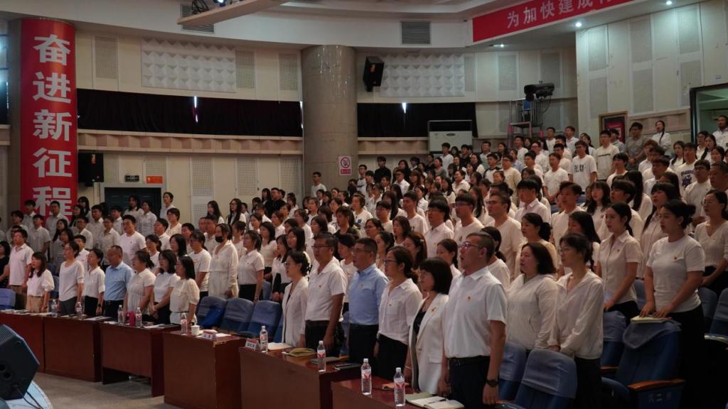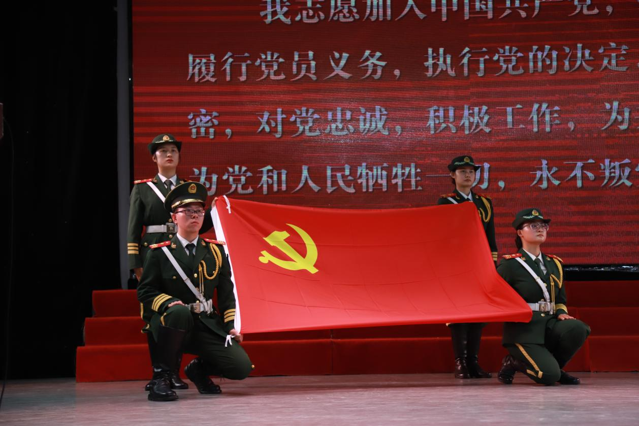 党课在庄严的国歌声中开始。与会人员在学生工作部(处)部长田耿辉的带领下,面对党旗庄严宣誓,重温入党誓词。