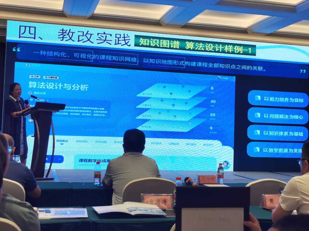 会议期间,北京师范大学周明全教授,西安电子科技大学崔江涛教授,西北大学耿国华教授、冯筠教授,陕西铁路工程职业技术学院王津教授,西安石油大学程国建教授,欧宝娱乐官方app杨方琦教授,西安欧亚学院张乐芳副校长,分别做了题为《智能时代的教育改革》《AI赋能计算机创新人才培养》《“数智”时代一流课程建设的探索实践》《面向产出的课程体系探索和实践》《以课程建设为抓手 全面推进专业教育教学改革》《AIGC微专业建设与认证&解读<智算与大模型人才白皮书>》《面向标准的师范生数字素养培养路径探索》《应用型民办本科高校计算机人才培养思考与实践》等主题报告。