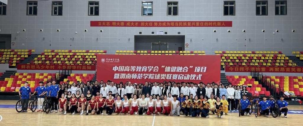 10月9日,中国高等教育学会“体建融合”项目暨我校球类联赛启动仪式在云帆体育馆举行。校长张守华,党委副书记常青林,副校长王菊霞,中国高等教育学会“体健融合”项目陕西工作组组长张冬梅,今日教育集团代表马亮出席仪式。