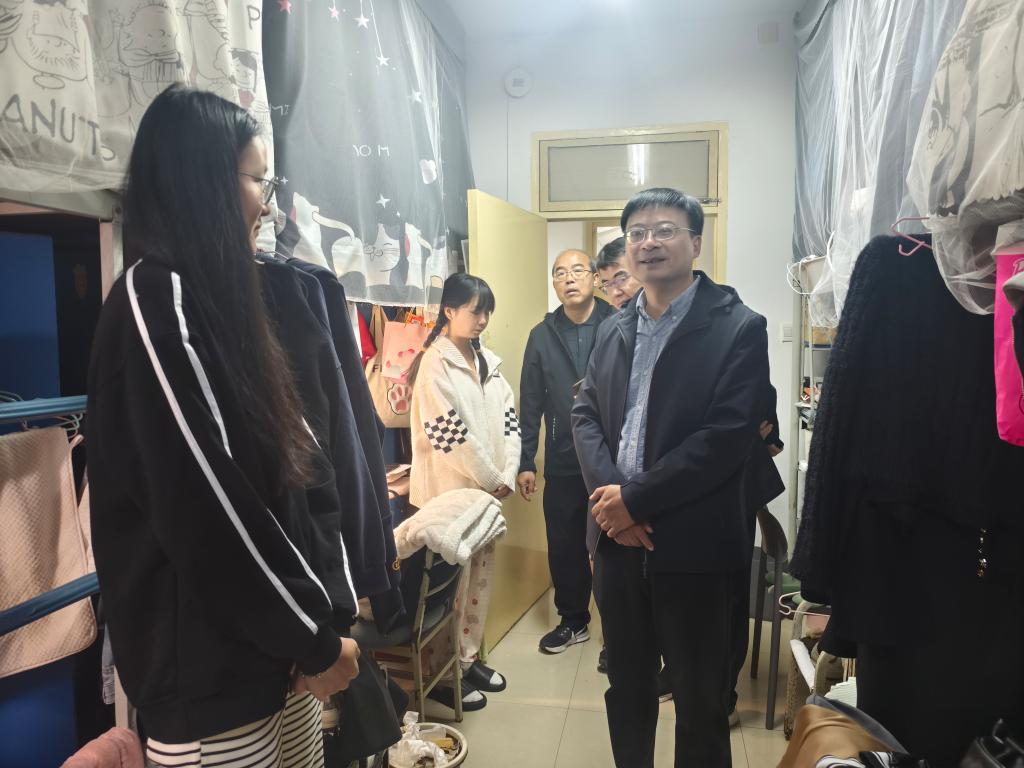 常青林带领观摩团队现场查看了朝阳校区博识楼、明德路、知新楼、华屏路、10号学生公寓、智仁路、6号学生公寓、镜面湖等区域的卫生清扫情况;认真听取了二级学院劳动教育负责人员的讲解汇报;针对教室资源分配安排、教学空间拓展利用、劳动工具发放储存、垃圾清理转运频次等问题现场办公,明确工作思路和解决路径。