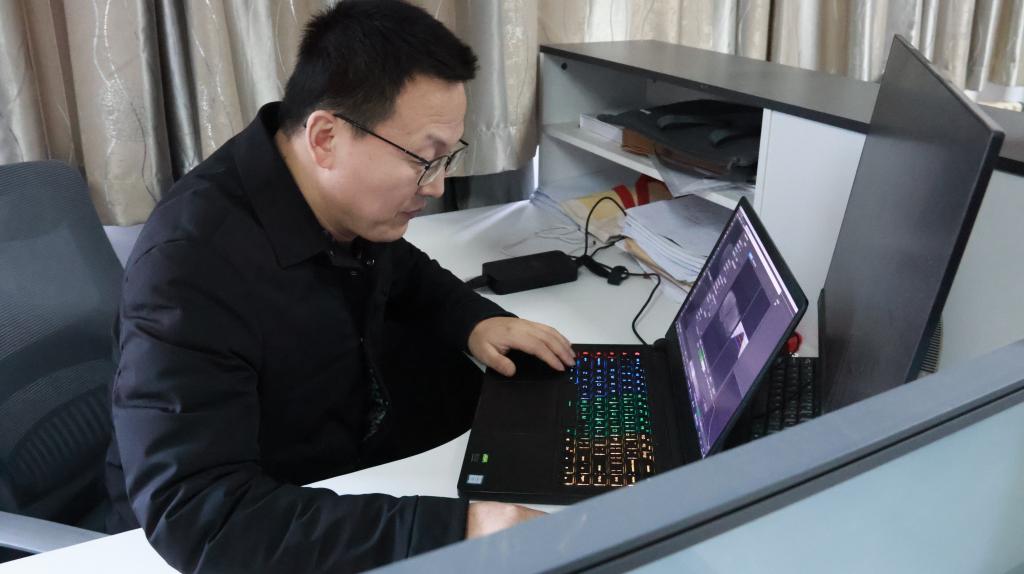 在学校实验楼的办公室内,我校物理与电气工程学院教师、X射线成像与检测陕西省高校工程研究中心核心成员葛春平副教授正在展示他的团队是如何通过自动判断工业CT重建图像质量对CT设备几何参数进行修正的。