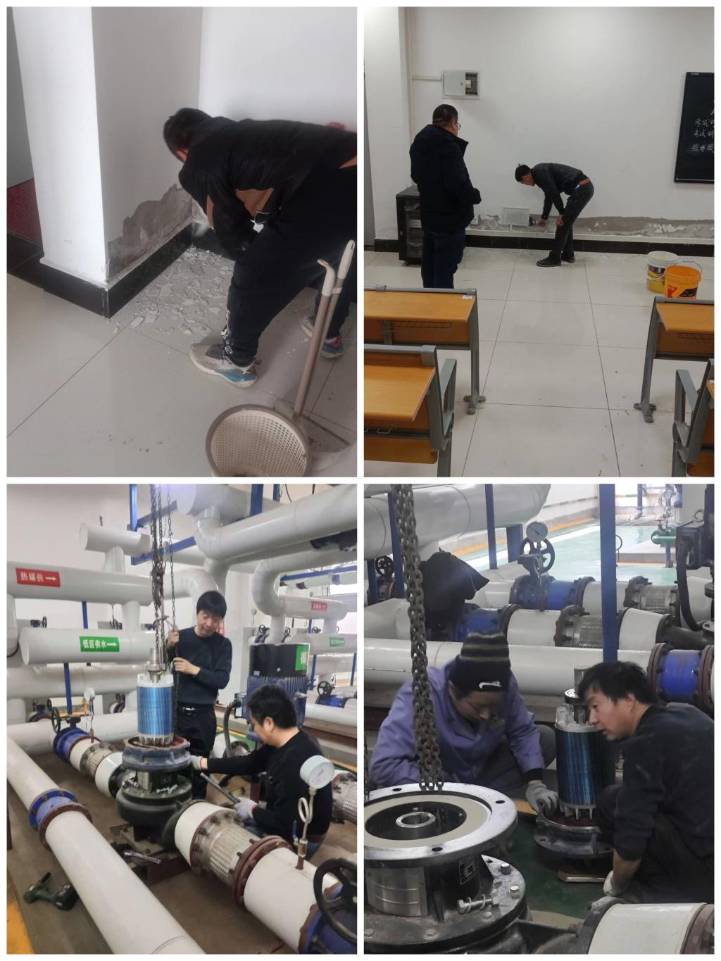 后勤服务中心假期工作不停歇,富平校区部分教室墙面粉刷维修及热力站设备维护