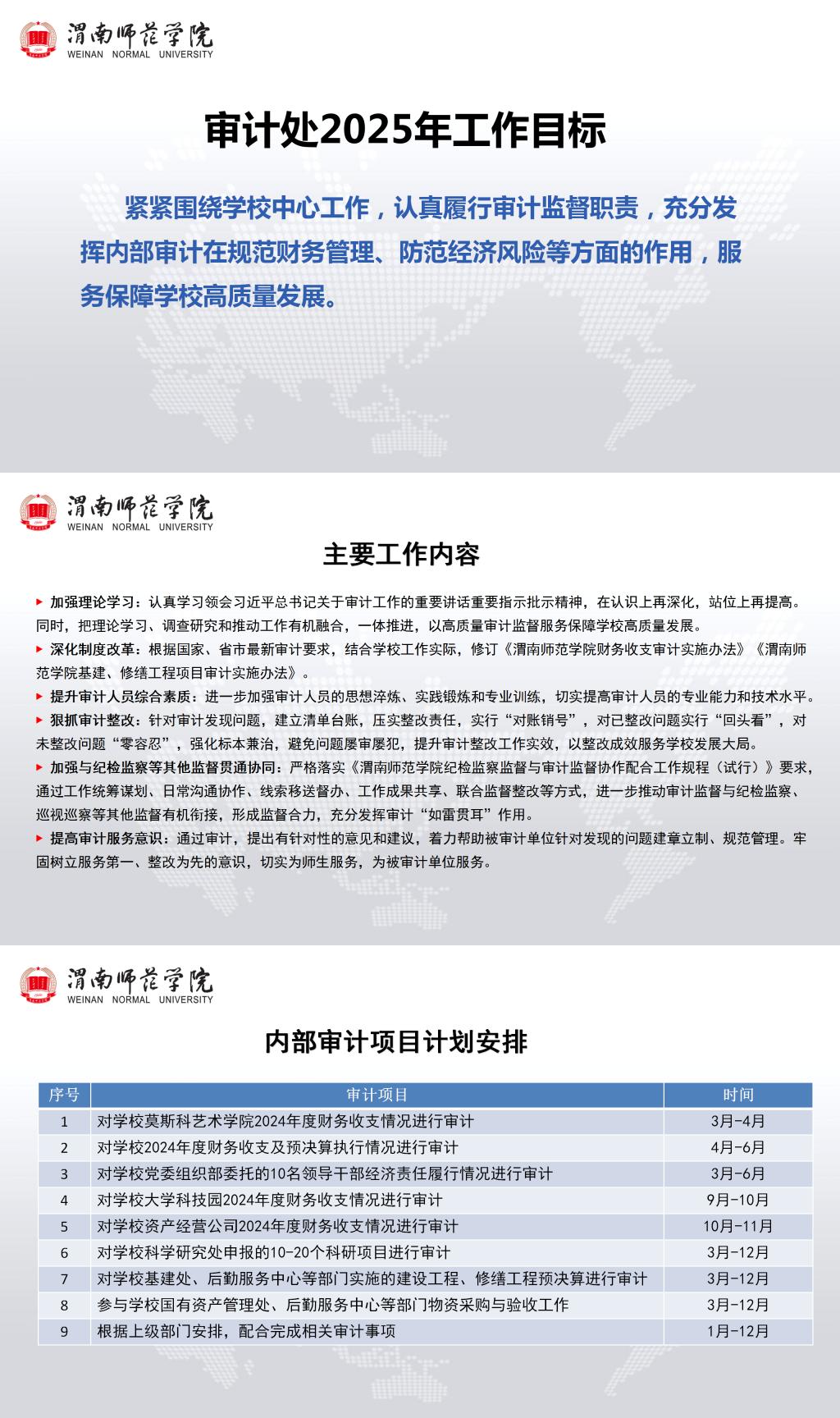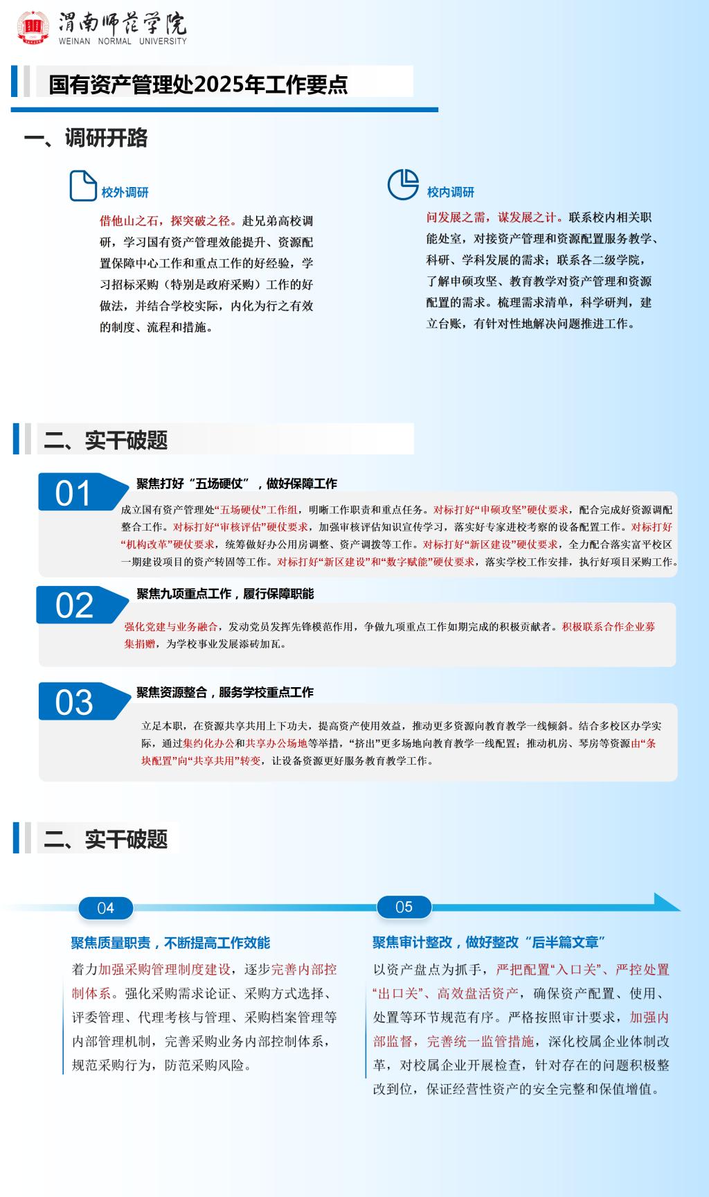 【编者按】为进一步坚定攻坚方向、明确奋进目标,营造干事创业的浓厚氛围,特推出“谋发展・克难关・共奋进”系列报道,集中宣传展示全校各二级单位2025年重点工作规划,挖掘各单位在聚焦学校“九项任务、八个调研、五场硬仗”中的新思路、新举措、新目标,搭建各单位相互交流、相互学习的平台,促进经验共享、协同发展,形成全校一盘棋、共促大发展的良好局面,全面呈现学校上下一心、砥砺前行的精神风貌,激励全体师生员工积极投身学校建设,为实现学校高质量发展贡献智慧和力量,携手在教育强国建设中书写渭师崭新篇章。