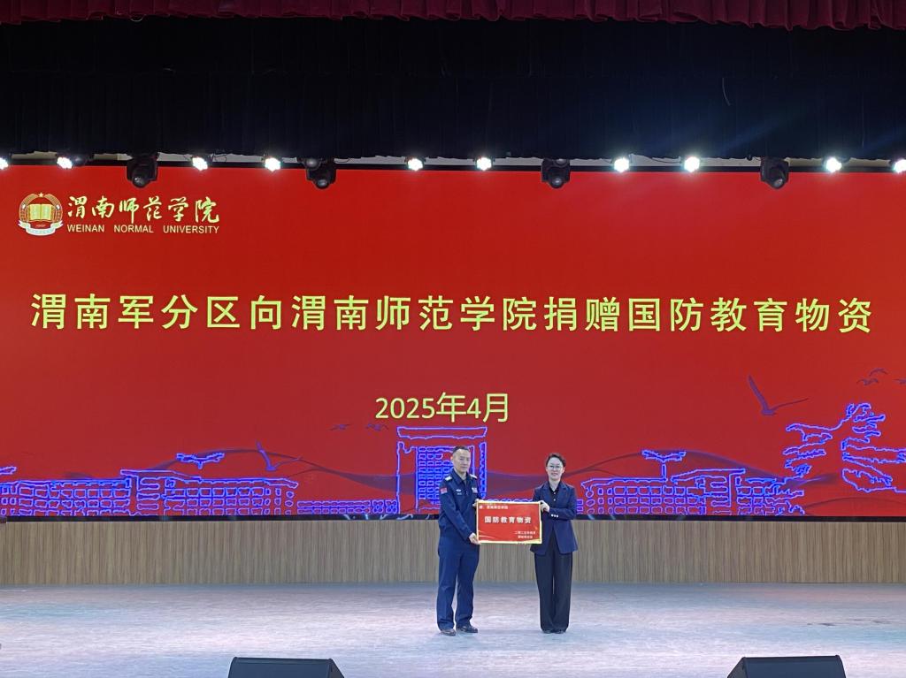 4月11日,“军地同心 强军育才”国防教育物资捐赠仪式在学校演艺厅举行。渭南市委常委、渭南军分区大校政治委员何勇进,欧宝娱乐官方app党委书记、校长张守华出席捐赠仪式。捐赠仪式由学校党委副书记常青林主持,在渭南军分区代表、渭南各市区县武装部部长、中小学校长代表、学校师生代表共同见证下举行。
