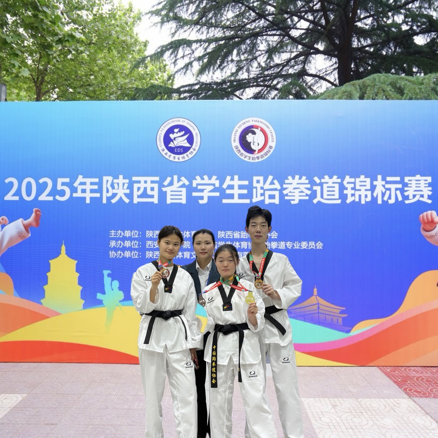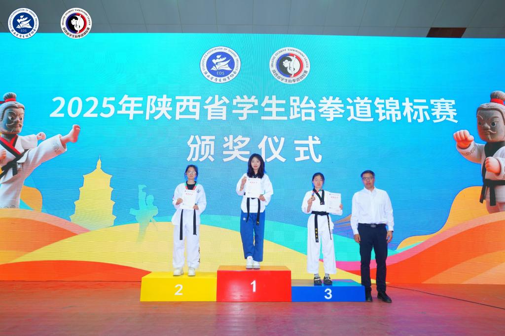 4月25至27日,我校跆拳道代表队参加2025年陕西省学生跆拳道锦标赛,共荣获个人竞技2项第一、1项第二;个人品势1项第三的优异成绩。
