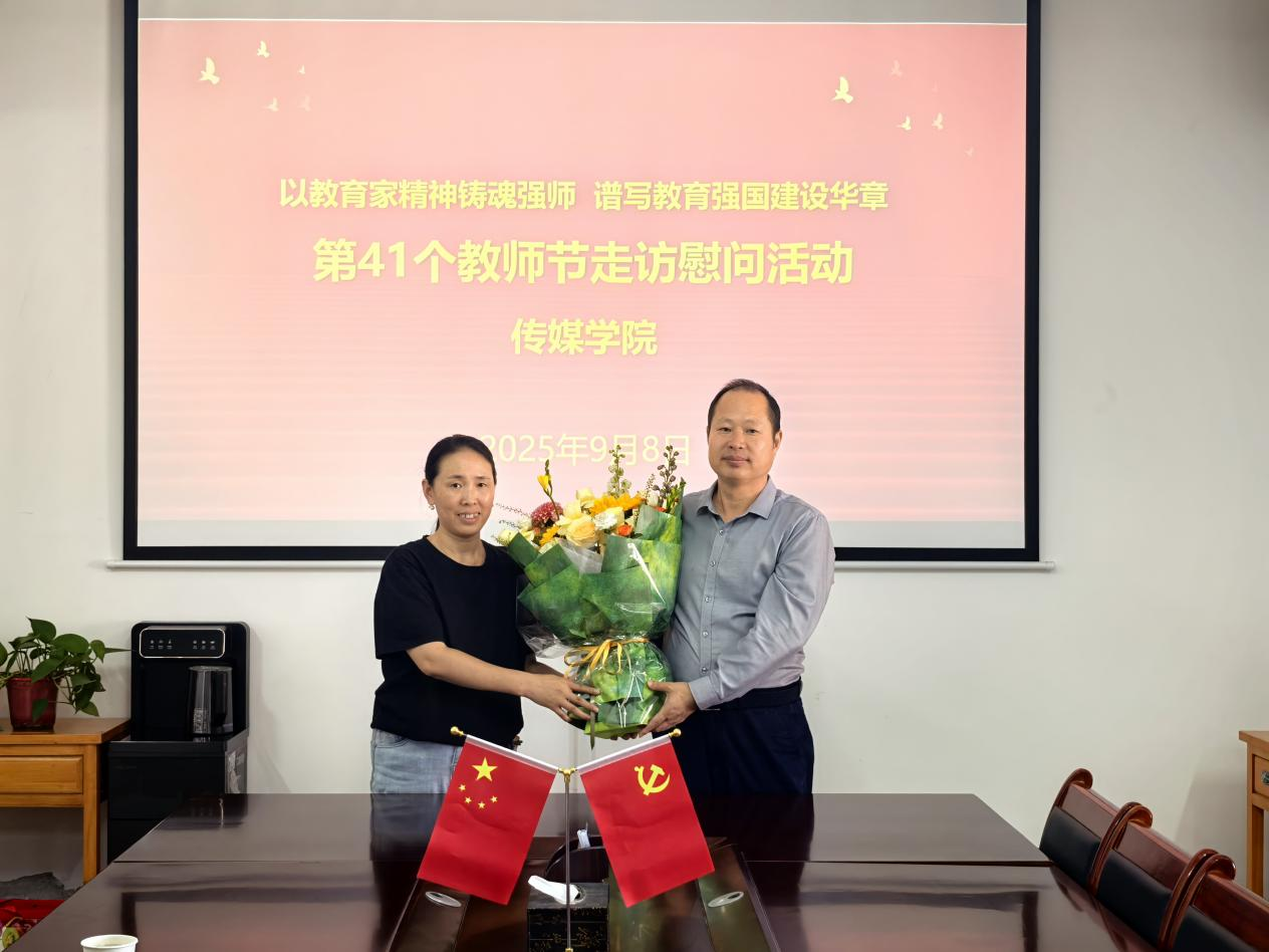 在第41个教师节来临之际,为向辛勤耕耘在教育教学一线的教职工及为学校发展作出贡献的退休教师致以节日的祝福与崇高的敬意,校党委副书记、校长李强,党委副书记、纪委书记肖耀刚,党委副书记汪勇、袁亮、常青林,副校长卢爱刚、曹强、王海峰分别带队开展教师节慰问活动,为这个特别的节日增添了浓浓的温情。