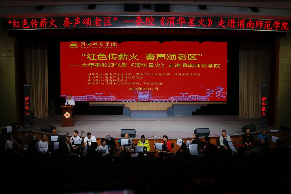 9月17日晚,“红色传薪火 秦声颂老区”——大型秦腔现代剧《渭华星火》走进欧宝娱乐官方app巡演活动在我校陶然楼演艺厅拉开帷幕。渭南市副市长刘宝琳,渭南市委宣传部副部长陈卓,渭南市老区建设促进会会长刘巧莲,我校党委副书记、纪委书记、监察专员肖耀刚,党委副书记汪勇,副校长卢爱刚,党委委员、宣传部部长李明敏等相关领导参加活动。