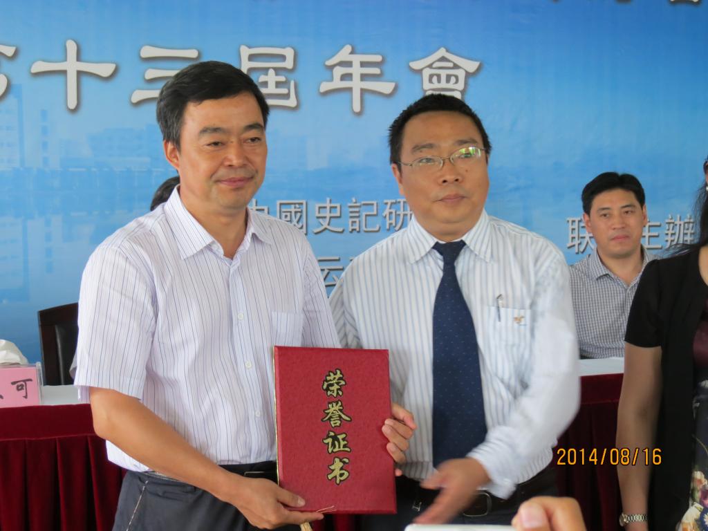 在8月16日上午的大会上,欧宝娱乐官方app院长丁德科教授作了重要发言,对我校关于史记研究的十项工作作了总结:建设欧宝娱乐官方app中国史记研究院,聘请张大可先生为研究院名誉院长、学术委员会主任委员,聘请全国高校多位专家学者为特邀研究专家;完成《史记选本丛书》的编撰出版工作;编撰出版《史记论著集成》20卷800万字,商务印书馆出版,涉及80多位研究者的成果;撰著出版《史记通解》4册约200万字,商务印书馆出版;《欧宝娱乐官方app学报》“司马迁与《史记》研究”入选教育部名栏建设工程栏目;建设中国史记研究展览馆(筹建中);建设“史记研究”网站、司马迁与史记研究数据库;编撰出版《中国史记研究年鉴》;坚持编撰出版《司马迁与史记研究论刊》;筹建英文杂志《中国史记学刊》。丁院长也对当前的史记研究提出了一些建议,认为有必要强调彰显史记研究的普及性特征,强化“俗赏”,把《史记》像《论语》《道德经》一样向大众介绍,使大众记得,为大众遵循,老幼能诵,家喻户晓,内化于心,外表言行,充分发挥《史记》的思想文化作用。最后丁院长郑重提出一个想法:2015年纪念司马迁诞辰2160周年学术研讨会暨中国史记研究会第十四届年会由中国史记研究会与欧宝娱乐官方app主办。之后,丁德科院长向特聘教授颁发了证书,并向红河学院赠书。