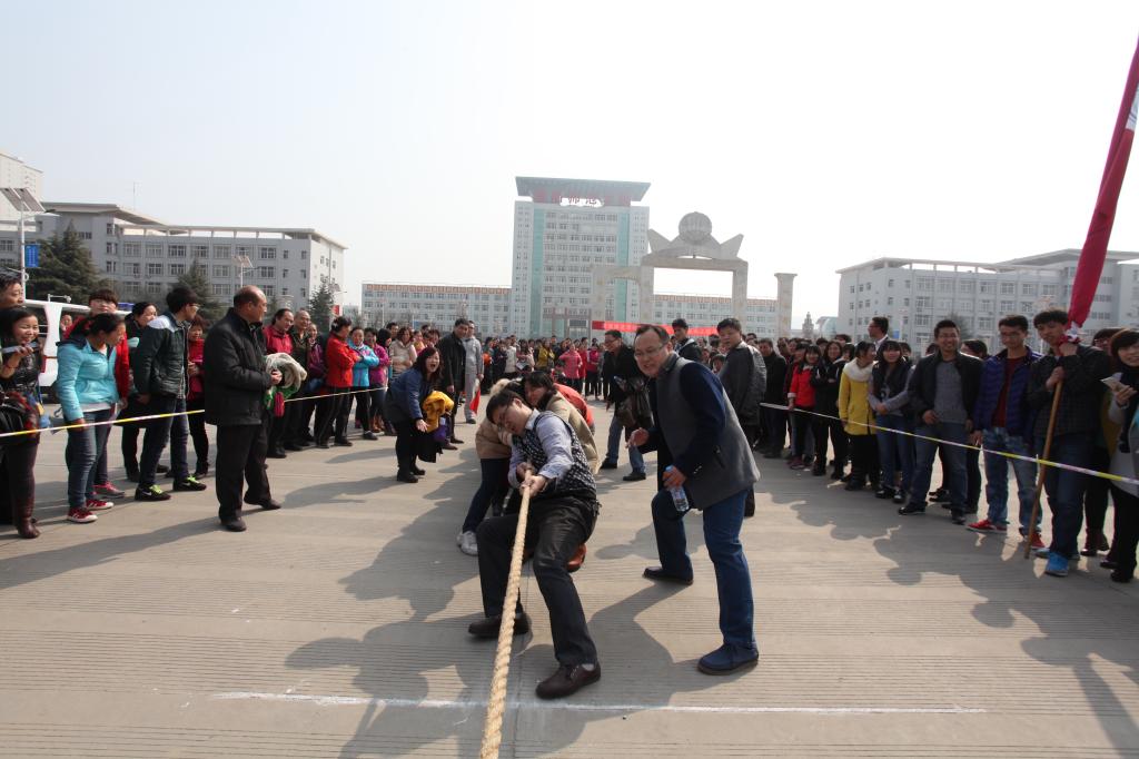 为了以实际行动庆祝“三八”国际劳动妇女节,进一步增强我校广大女职工的凝聚力、创造力、影响力,积极倡导“我运动、我健康我快乐”的生活理念,大力营造浓厚欢乐的节日气氛,不断弘扬“四自”精神和爱岗敬业、乐于奉献、开拓创新的时代精神,切实丰富广大女教职工的业余文化生活。3月11日下午,学校在新校区广场前举办了庆祝“三八”国际劳动妇女节女教职工拔河比赛。本次活动由校工会主办,女工委员会、计生委、体育学院分会承办。