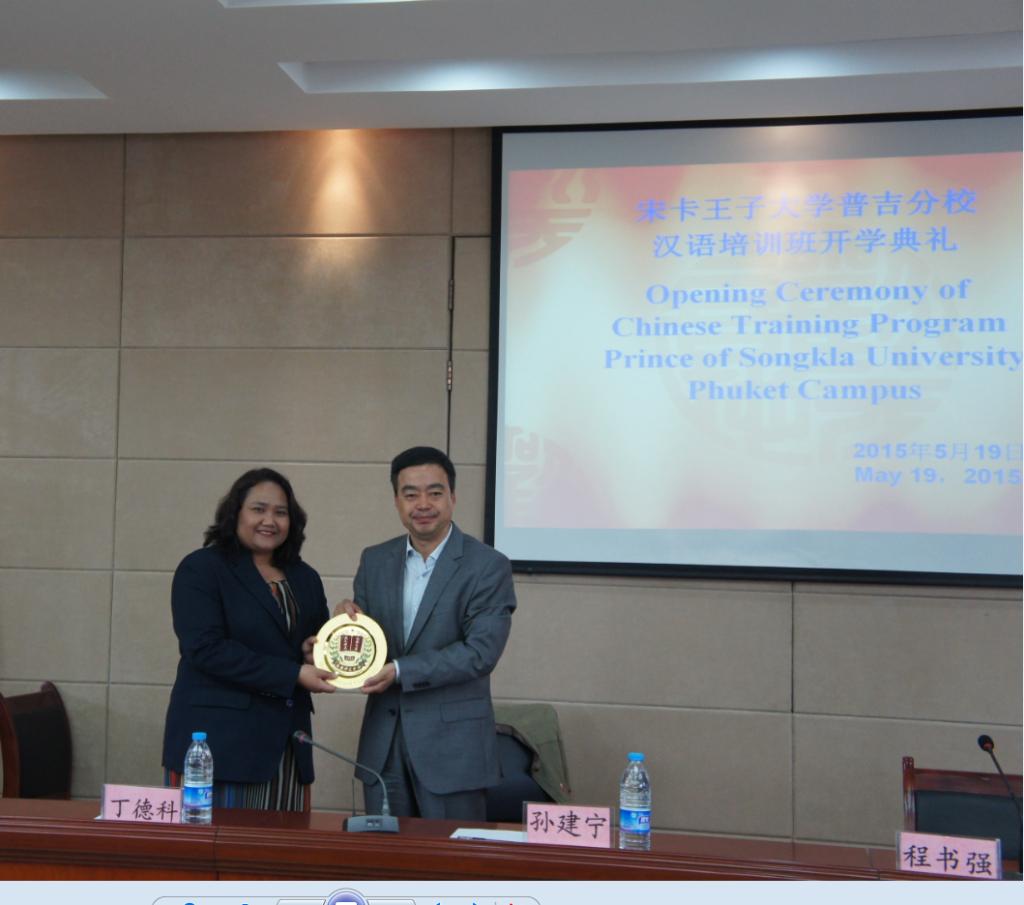 5月19日下午,泰国宋卡王子大学普吉分校国际汉语留学生班开学典礼在我校学术报告厅举行。省教育厅国际合作与交流处处长孙建宁、院长丁德科、宋卡王子大学普吉分校国际研究学院副院长Napacha、国际研究系主任Jarasak等参加典礼。开学典礼由副院长程书强主持。