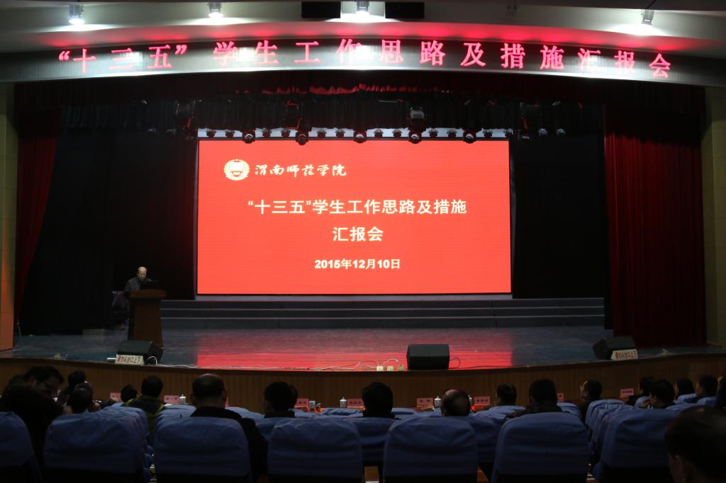 12月10日下午,我校在陶然楼演艺厅召开“十三五”学生工作思路及措施汇报会。学校领导,副处级以上干部,二级学院学生管理人员,学工部、团委全体人员,教学督导等参加会议。会议由党委副书记赵伏友主持。