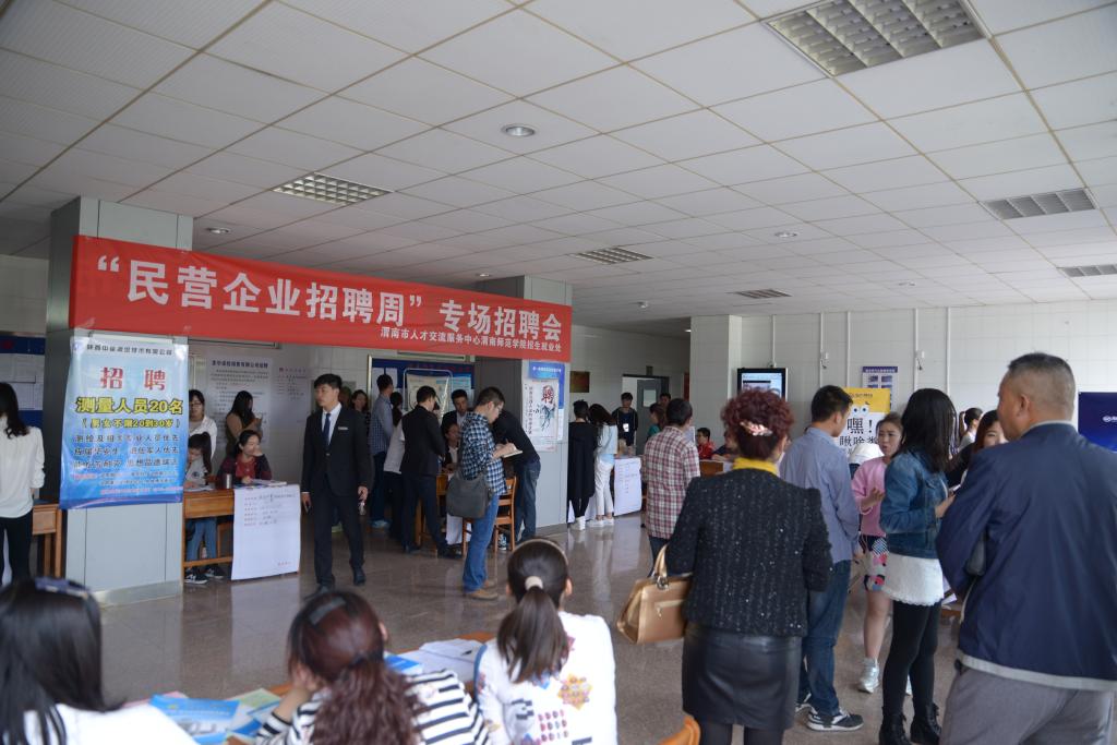 为切实做好2016届毕业生就业工作,积极拓宽就业市场,提升毕业生就业质量,同时,广泛服务渭南地方社会经济发展,4月20日下午,我校与渭南市人才交流服务中心在朝阳校区联合举办了渭南市2016年“民营企业进校园”招聘活动。