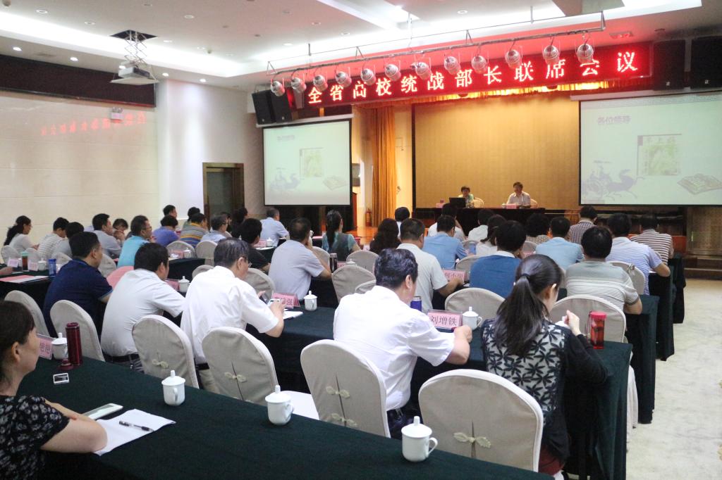 7月14日至15日,全省高校统战部长联席会议在渭南市祥龙宾馆举行。参加会议的有省委高教工委委员、统战部部长李智军、省委统战部六处处长魏晓鸿、省委统战部六处调研员张琼霞及来自全省高校统战部长共55人,李智军部长主持会议。会议由我校协助承办。