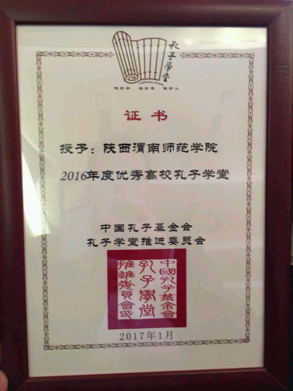 会上评选出了2016年度工作成绩突出的孔子学堂。我校孔子学堂在全国360多家高校孔子学堂中脱颖而出,被评为“2016年度优秀高校孔子学堂”,这是我校孔子学堂继2015年度被评为“全国十佳人气学堂”后,获得的又一殊荣。