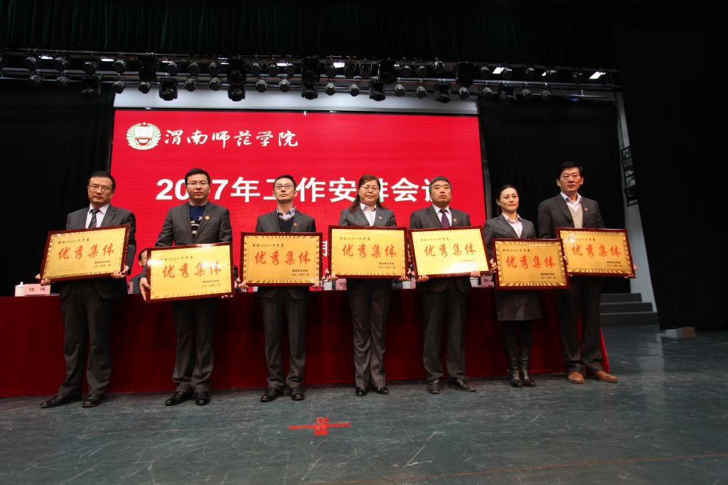 会上,任健宣读了《关于表彰2016年度考核优秀集体、优秀个人和先进个人的决定》《关于授予杜百顺、梁晶二位同志“渭华标兵”荣誉称号的决定》。学校领导向受表彰的集体和个人颁发奖牌和证书。