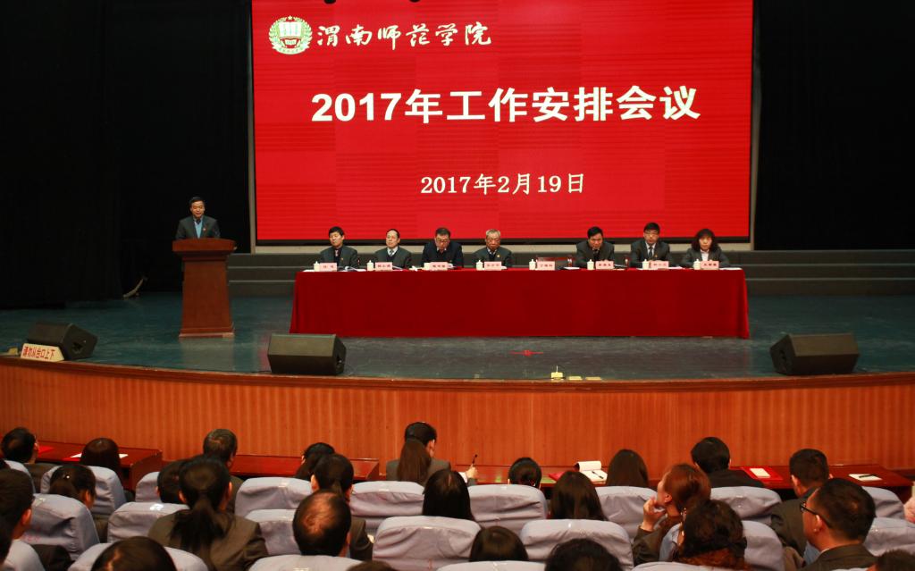 校长丁德科在大会上首先回顾了2016年的各项工作,对去年一年全校师生团结协作取得的工作成绩给予了高度的肯定,同时针对工作中的存在的不足,结合2017年的工作重点提出新的要求。他指出,要以习近平总书记治国理政思想为指导,认真学习贯彻习近平总书记系列重要讲话精神,撸起袖子加油干,干出更大更好的成绩。学校要按照《欧宝娱乐官方app“十三五”事业发展规划(2016-2020年)》《欧宝娱乐官方app“十三五”追赶超越实施方案(2016-2020年)》《欧宝娱乐官方app“五个一流”建设方案》既定的方针和部署,加强顶层设计,扎实开展工作,促进学校各项事业又好又快发展,努力追赶超越。要紧紧围绕学校“两个百年”目标,切实实施我省追赶超越发展战略,抢抓机遇,迎接挑战,坚持内涵发展、开放发展、突破发展,主动、切实、创造性地开展工作,为建设特色鲜明的高水平地方师范大学而努力奋斗!